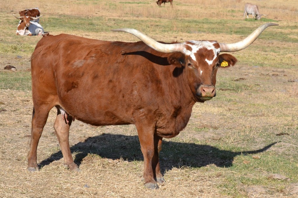 This cow has proved herself with her beautiful longhorned daughters. She is a great mom that milks very well. Produces way beyond herself.