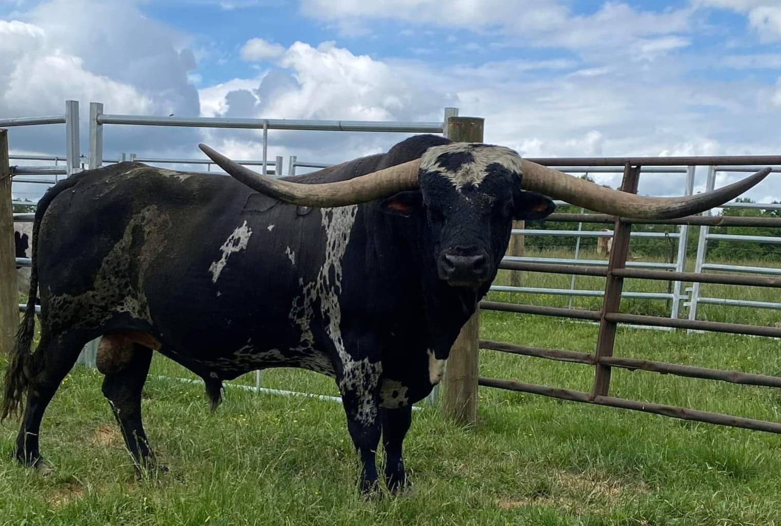 Top Hand is in a League of his own. His daughters are proving to be some of the very BEST producers in the breed. He tipped 5-7″ off of each horn as a youngster, and he continues to broom off his tips. Still, he Measured 79″ TTT on 10/24/19 If you do the math, it’s easy to see that he would measure in his 90’s. His progeny provides the evidence of his power to pass on Horn, conformation and color. Top Hand brings the genetics of two legendary bulls, Top Caliber (88.25″ TTT) and WS Jamakizm (90″ TTT) to our herd. For color, conformation, horn and disposition… he is a game changer and one of the most impressive bulls in the breed. Sadly, Top Hand died in early 2023. No more Top Hand daughters will ever be available.